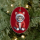 Kitten in einem rot-weißen Weihnachtskraut Keramik Ornament