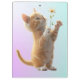 Kätzchen mit Blume auf blau/rosa Hintergrund