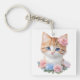 Kitten mit Blume Whimsical Feline Schlüsselanhänger