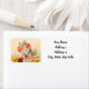 Rücksendeadressen-Aufkleber mit Meta Plückebaum Kunstwerk Kitten mit rotem Band (b. 1876). Ein graues Kätzchen mit dunklen Streifen ist schön mit einem roten Band geschmückt. Das Kätzchen spielt mit einer Biene. Gelbe Blumen schmücken den Vordergrund. Ein wunderbares Geschenk für Katzenliebhaber und deutsche Kunstliebhaber!