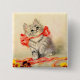 Button mit Meta Plückebaum Kunstwerk Kitten mit einem roten Band (b. 1876). Ein graues Kätzchen mit dunklen Streifen ist schön mit einem roten Band geschmückt. Das Kätzchen spielt mit einer Biene. Gelbe Blumen schmücken den Vordergrund. Ein wunderbares Geschenk für Katzenliebhaber und deutsche Kunstliebhaber!