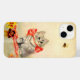 iPhone Case mit Meta Plückebaum Kunstwerk Kitten mit einem roten Band (b. 1876). Ein graues Kätzchen mit dunklen Streifen ist schön mit einem roten Band geschmückt. Das Kätzchen spielt mit einer Biene. Gelbe Blumen schmücken den Vordergrund. Ein wunderbares Geschenk für Katzenliebhaber und deutsche Kunstliebhaber!