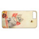 iPhone Case mit Meta Plückebaum Kunstwerk Kitten mit einem roten Band (b. 1876). Ein graues Kätzchen mit dunklen Streifen ist schön mit einem roten Band geschmückt. Das Kätzchen spielt mit einer Biene. Gelbe Blumen schmücken den Vordergrund. Ein wunderbares Geschenk für Katzenliebhaber und deutsche Kunstliebhaber!