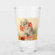 Glass Tumbler mit Meta Plückebaum Kunstwerk Kitten mit rotem Band (b. 1876). Ein graues Kätzchen mit dunklen Streifen ist schön mit einem roten Band geschmückt. Das Kätzchen spielt mit einer Biene. Gelbe Blumen schmücken den Vordergrund. Ein wunderbares Geschenk für Katzenliebhaber und deutsche Kunstliebhaber!