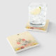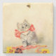 Stone Untersetzer mit Meta Plückebaum Kunstwerk Kitten mit rotem Band (b. 1876). Ein graues Kätzchen mit dunklen Streifen ist schön mit einem roten Band geschmückt. Das Kätzchen spielt mit einer Biene. Gelbe Blumen schmücken den Vordergrund. Ein wunderbares Geschenk für Katzenliebhaber und deutsche Kunstliebhaber!