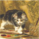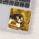 Aufkleber mit Henriëtte Ronner-Knip Ölgemälde The Young Artist (1821-1909). Ein Schwarz-Weiß-Kätzchen spielt mit einem Set und zwei Pinseln. Ein wunderbares Geschenk für Katzenliebhaber und Romantiker.
