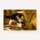 Abzeichen mit Henriëtte Ronner-Knip Ölmalerei The Young Artist (1821-1909). Ein Schwarz-Weiß-Kätzchen spielt mit einem Set und zwei Pinseln. Ein wunderbares Geschenk für Katzenliebhaber und Romantiker.