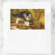 Stickers mit Henriëtte Ronner-Knip Ölgemälde The Young Artist (1821-1909). Ein Schwarz-Weiß-Kätzchen spielt mit einem Set und zwei Pinseln. Ein wunderbares Geschenk für Katzenliebhaber und Romantiker.