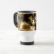 Travel Mug mit Henriëtte Ronner-Knip Ölgemälde The Young Artist (1821-1909). Ein Schwarz-Weiß-Kätzchen spielt mit einem Set und zwei Pinseln. Ein wunderbares Geschenk für Katzenliebhaber und Romantiker.