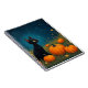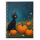 Auf einem mondbeleuchteten Feld schlängelt sich ein spielerisches schwarzes Kätzchen durch lebendige Kürbis, deren Orangenfarben sanft leuchten. Oben ein dunkler Himmel Glitzern mit skurrilen Sternen Formen, die eine magische nächtliche Szene schaffen.