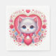 Kitten mit Red Bow mit romantischen Blumenherzen Serviette