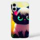 Dieser Telefonkasten hat eine Cartoon-Katze drauf.