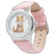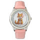 Kinderuhr aus Edelstahl mit rosa Lederarmband