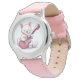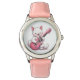 Kinderuhr aus Edelstahl mit rosa Lederarmband
