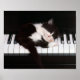 Poster mit einem Foto von einem niedlichen Kätzchen, das auf dem Klavier schläft. Passen Sie dieses Objekt an oder kaufen Sie, wie es ist. Bild
