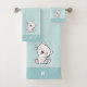 Niedliche Katze und Monogramm auf hellblauen Badetuch-Set.