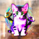 Niedliche Kitty Cat Digitale Malerei, mit verstörenden glitzernden Augen, trippige Pilze, surreal Psychedelisch Surreal Art Copyright BluedarkArt The ChameleonArt.