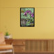 Dieses lustige Stillleben eines großen mit Augen Kätzchens, ein ambitionierter Kanarienvogel und eine fröhliche Topffuschia in einem glänzend gestreiften Glastopf schaffen ein skurriles Tableau, das den postimpressionistischen französischen Maler Matisse ausdrückt. Das originelle digitale Bild von Leslie Sigal Javorek ist 18"x24", gedruckt auf einem schweren Plakatpapier mit Halbglanzfarbe.