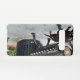Kitty in The Park entlang der Seite eisernen Bank und Müll kann. Schwarze Katze. Schwarze, schmiedeeiserne und schwarze Katze. Von frontiernow.com