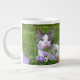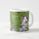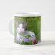 Hübsches Riger und weißes Kätzchen braucht Zeit, um die Blume zu Karo. 2 verschiedene Bilder auf jeder Seite dieser Tasse
