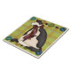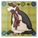 Grüner, blauer, orangefarbener karierter Hintergrund mit primitiven illustrierten Katzenbällchen aus Garn und Herzen. Dekoratives und nützliches einzigartiges Geschenk für sie. Cat and Garn Trim Illustration von Trina Clark. Design von Deborah Miller.