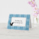 Silhouette einer Katze auf einem blauen karierten Muster für Beileid zum Verlust von Haustieren. Alle Texte können geändert werden.
