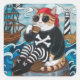 Kitty Pirate in fuzzy schwarzen Pullover mit einem Quadratischer Aufkleber