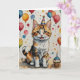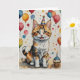 Eine spielerische Illustration eines glücklichen Kätzchens mit einem bunten Party, umgeben von kräftigen Ballons und fröhlichen Konfetti. Vor dem Kätzchen befindet sich ein Kuchen mit blauen Zuckergüssen, Sprinklen und einer Kerze im Single. Der Hintergrund mit festlichen Farbtupfern verleiht dem fröhlichen Geburtstagsgeschenk eine fröhliche Atmosphäre.