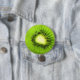Ein Gemälde eines Kiwi-Obstschnitzes in seinem verschwommenen grünen Glanz.