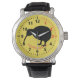 Uhr, Klassische Damenuhr mit schwarzen Lederarmband