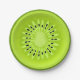 Papierplatte als moderne, stilisierte Scheibe Kiwi-Früchte, mit Samen und texturierten Gradienten - eine originelle tropische Fruchtdarstellung in Fotoshop und Adobe Illustrator