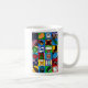 Eine Kaffee-Tasse mit einem Gitter von Kiwiana-Objekten, die auf jeder Seite der Tasse in ihr abgebildet sind. © Radenbrea Studios bei Zazzle, Eine großartige Tasse, als Geschenk zu geben, oder für alle, die Neuseeland Lieben.