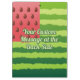 Rote und grüne Wassermelonenflagge mit Streifen und Samen. Benutzerdefinierter Text auf beiden Seiten.