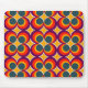Dieses Mauspad hat ein modernes Design von konzentrischen Kreisen in den Farben der 1970er Jahre mit Sternen zwischen den einzelnen Gruppen.