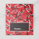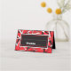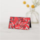 Diese Platzkarten im Zelt haben ein rotes, schwarzes und weißes urbanes Zickzag Grafitti Muster. Es gibt Zeilen, auf denen Sie den Namen und die Tischnummer des Gastes handschreiben können.