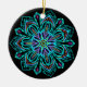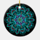 Klare geometrische NeonMandala auf schwarzem Keramik Ornament