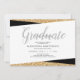 Diese moderne Graduiertenparty-Einladung zeichnet sich durch ein geometrisches Design in Gold und Schwarz aus, das mit goldenen Imitaten Glitzer betont wird.