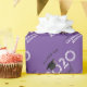 Dieses Abschluss Packpapier bietet ein 2020 Abschluss Design in lila, schwarz und weiß mit individuellem Text für den Namen des Absolventen. Der Text lautet: Klasse von 2020 Grad. Ein schwarzer Mörtel sitzt über der Null des Jahres. Die Hintergrundfarbe kann geändert werden.