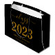 Stilvolle und elegante Geschenktasche für Abschluss! Feiern Sie mit diesem trendigen Abschluss-Geschenksack die Leistungen des Absolventen stilvoll. Design bietet "Class of 2023" in Gold Schriftart auf einem klassischen schwarzen Hintergrund. Personalisieren Sie dieses Produkt, indem Sie den Namen und den Namen der Schule hinzufügen. Einfach anzupassen. Herzlichen Glückwunsch!