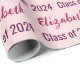 Das Packpapier ist blassrosa. Alle haben ein Textmuster für den Namen und die Klasse des Absolventen 2024. Der Name (Shown: Elizabeth) erscheint in einem eleganten Skript. Der gesamte Text kann bearbeitet werden.