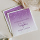 Diese eleganten, eleganten Graduiertenserien-Papierservietten zeichnen sich durch eine funkelnd lila Imitat Glitzer Tropfen-Grenze und lila ombre Hintergrund aus. Personalisieren Sie sie mit dem Ehrengast in lila Handschrift, mit ihrem Unterrichtsjahr unten in Sans Serif Schriftart. Ideal für High School oder Uni-Abschluss.
