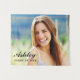 Zeigen Sie mit diesem Wandschild, das an der Wand hängt, ein personalisiertes Foto Ihres Absolventen Ihrer Uni oder Oberschule. Einfaches und minimales Design mit einem Foto des Abschlusses, mit einem modernen und eleganten Skriptüberlagerungen von Namen und Klasse des Absolventen. Schwarze Textfarbe und Schriftart Stile können geändert werden.