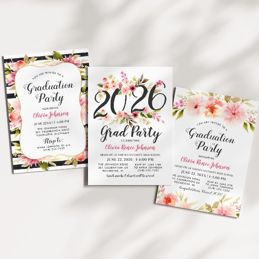 Watercolor Blush Floral Graduation PartyDesignt von Kat Fusinski