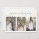 Klasse von 2025 Graduate Salbei grün und Pfirsichstreifen Abschluss moderne, einfache und minimale Party Foto Collage mit drei Fotos Einladung. Es enthält den Text "Graduate" in Salbei grün und Pfirsich und drei Fotos. Die Rückseite weist ein Foto und ein diagonal gestreiftes Muster in den gleichen Farben auf.