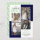 Moderne Klasse von 2025 vier Foto rot rot Rosa und minzgrün Abschluss Ankündigung. Es umfasst vier Fotos des Absolventen auf Farbblöcken von Marineblau, Minzgrün und Weiß.