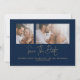 Klassische 2 Foto Gold Line Border Navy Blue Wedding speichern Sie das Datum. Ersetzen Sie einfach die beiden Fotos mit Ihren eigenen Favoriten. Save the Date ist in einem stilvollen Set-Skript, und leicht personalisieren Sie die Erholung des Textes. Fügen Sie Ihren QR-Code zu Ihrer Hochzeitswebsite auf der Rückseite macht dies zu einer bequemen Option für Ihre Gäste, alle Details zu sehen. Ändern Sie einfach die Beispiel-URL mit Ihrem eigenen und Ihr QR-Code wird automatisch generiert.