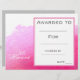 Eine stilvolle Auszeichnung der modernen Klasse mit niedlicher Lackbespannung Aquarellpinke, die perfekt geeignet ist, einen jungen Kunststudenten zu ermutigen. Sie können in Ihre eigenen Details schreiben. Eine großartige Ressource für jede Art von Klassenlehrer.