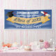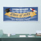 Dieses fett formatierte Textdesign hat eine Vorlage, um den Namen Ihrer High School oder Uni und Klassenjahr einzugeben. Der blaue Hintergrund kontrastiert gut mit dem gelben Banner und dem hellen weißen Text für ein leicht lesbares Banner. Text lautet "Glückwunsch! High School Name Class 20XX wir begrüßen Sie!"