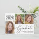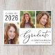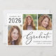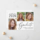 Einfache 2025 Abschluss-Ankündigung mit einer 3 Foto-Collage und "Graduate" in einem eleganten Drehbuch. Fügen Sie den Namen, das Unterrichtsjahr und die Schule oder Universität in der modernen Typografie.