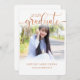 Am besten wählt man ein Foto mit viel Platz über dem Kopf des Absolventen und ein Zimmer unten. Eine vereinfachende Ankündigung Abschluss, Zeremonie oder Party laden, mit dem Foto, Name und Schule des Absolventen auf der Kartenvorderseite. Das Erscheinungsbild von Bronzeblatt wurde digital in einem trendigen Script-Schriftart für die Klasse von 2025 erstellt.